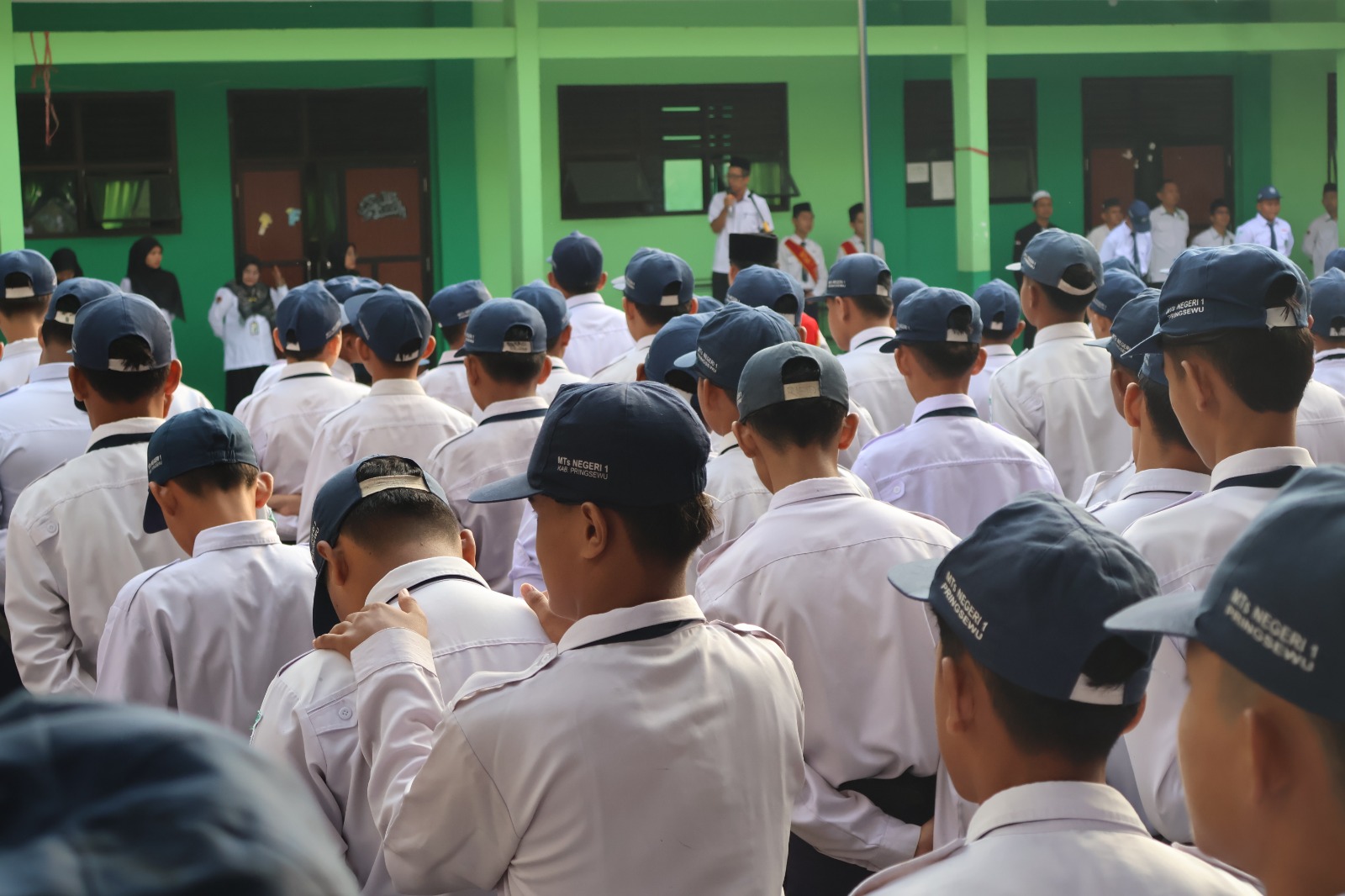 MTsN 1 Pringsewu (Humas)_ Upacara bendera yang digelar pada Senin pagi, 28 Juli 2025, di lapangan MTs Negeri 1 Pringsewu berlangsung dengan khidmat. Kegiatan rutin tersebut diikuti oleh seluruh siswa, guru, dan tenaga kependidikan MTs Negeri 1 Pringsewu.