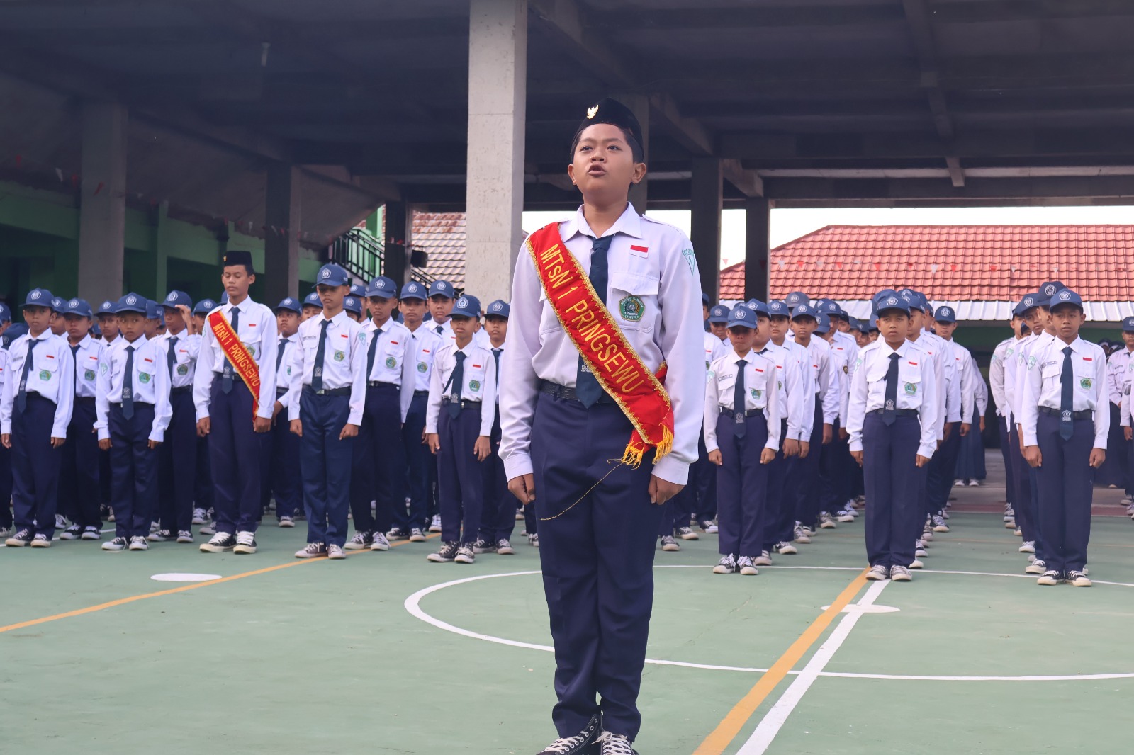 MTsN 1 Pringsewu (Humas)_ Upacara rutin hari Senin, 27 Oktober 2025, di MTs Negeri 1 Pringsewu berlangsung dengan penuh khidmat di lapangan madrasah. Seluruh siswa, pendidik, dan tenaga kependidikan mengikuti kegiatan ini dengan tertib dan antusias. Pada kesempatan tersebut, amanat disampaikan oleh Ibu Istiqomatul Lailiyah, S.Pd., atau yang akrab disapa Miss Isti.
