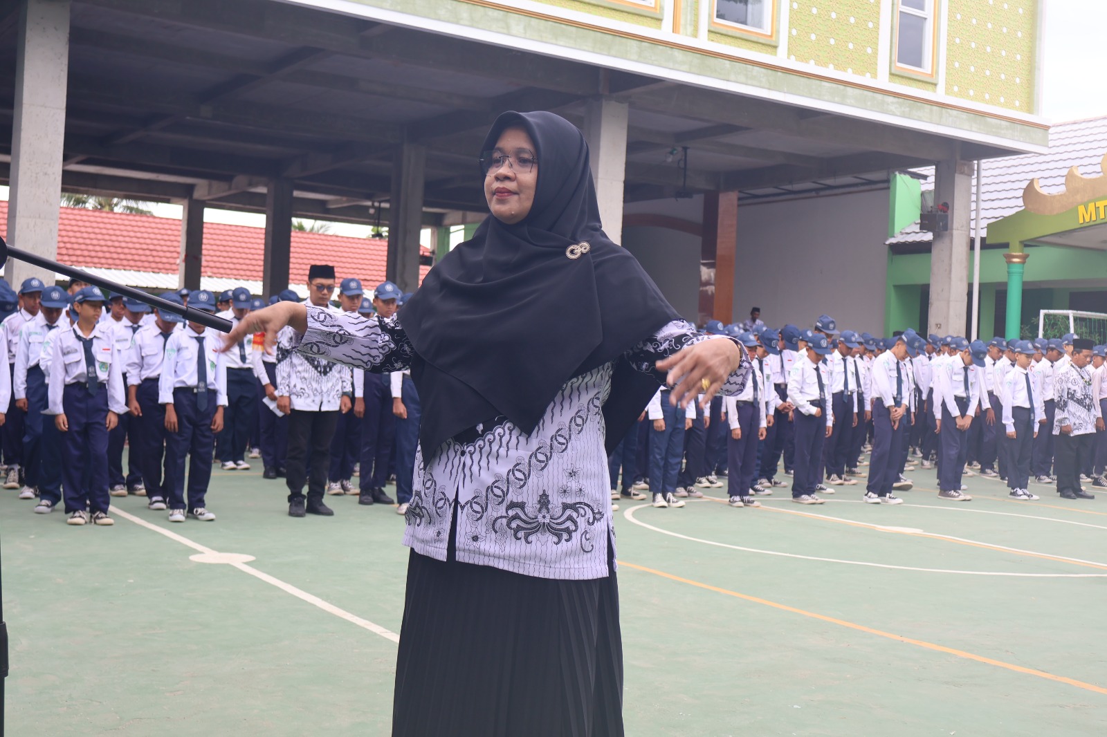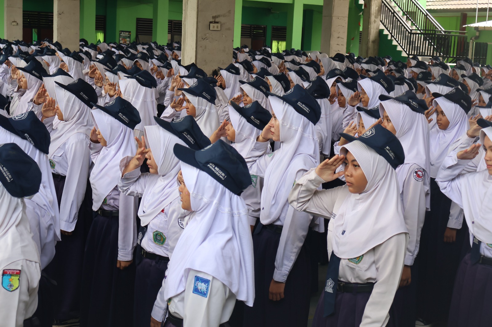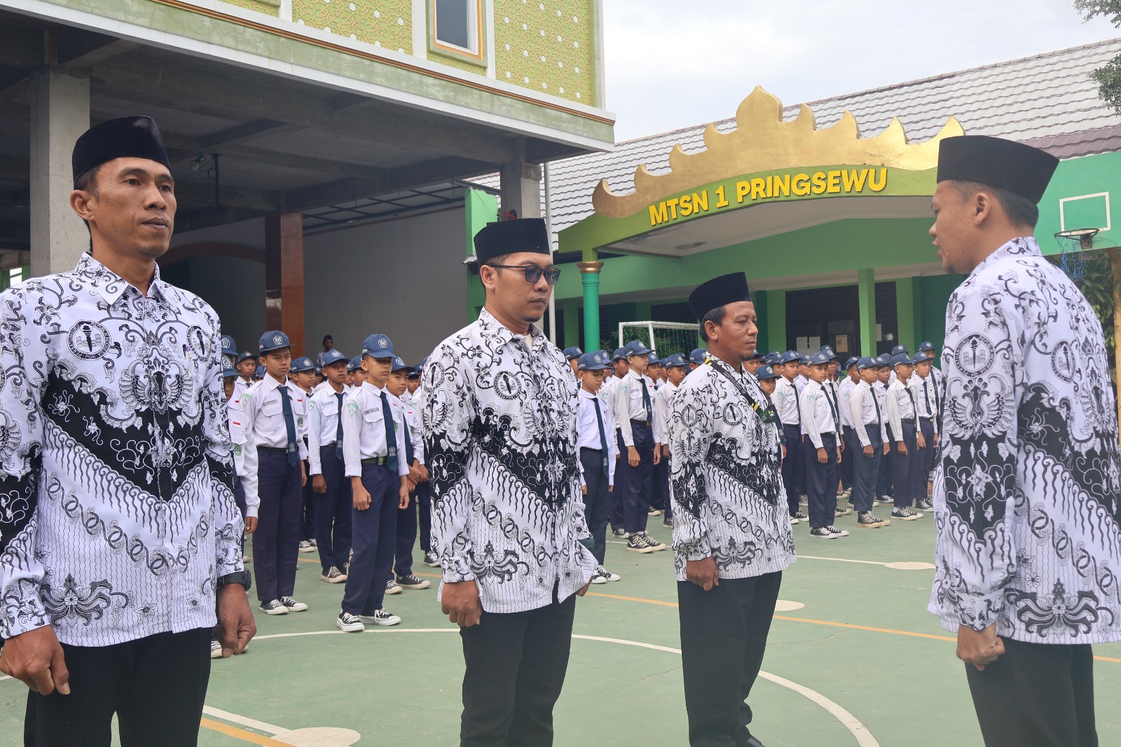 Peringatan dimulai dengan upacara bendera yang berlangsung khidmat di lapangan madrasah. Seluruh siswa, guru, dan staf MTsN 1 Pringsewu mengikuti upacara dengan penuh antusias sebagai bentuk penghormatan kepada para pendidik yang telah berjasa dalam perjalanan pendidikan bangsa.