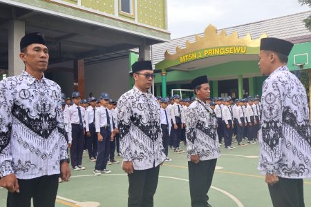 MTsN 1 Pringsewu (Humas)_ MTs Negeri 1 Pringsewu menggelar peringatan Hari Guru Nasional (HGN) tahun 2025 yang bertepatan dengan Hari Ulang Tahun Persatuan Guru Republik Indonesia (PGRI) ke-80 pada Selasa, 25 November 2025. Kegiatan tahun ini mengangkat tema “Merawat Semesta dengan Cinta”, sebagai refleksi peran guru dalam membangun generasi berkarakter dan berilmu.