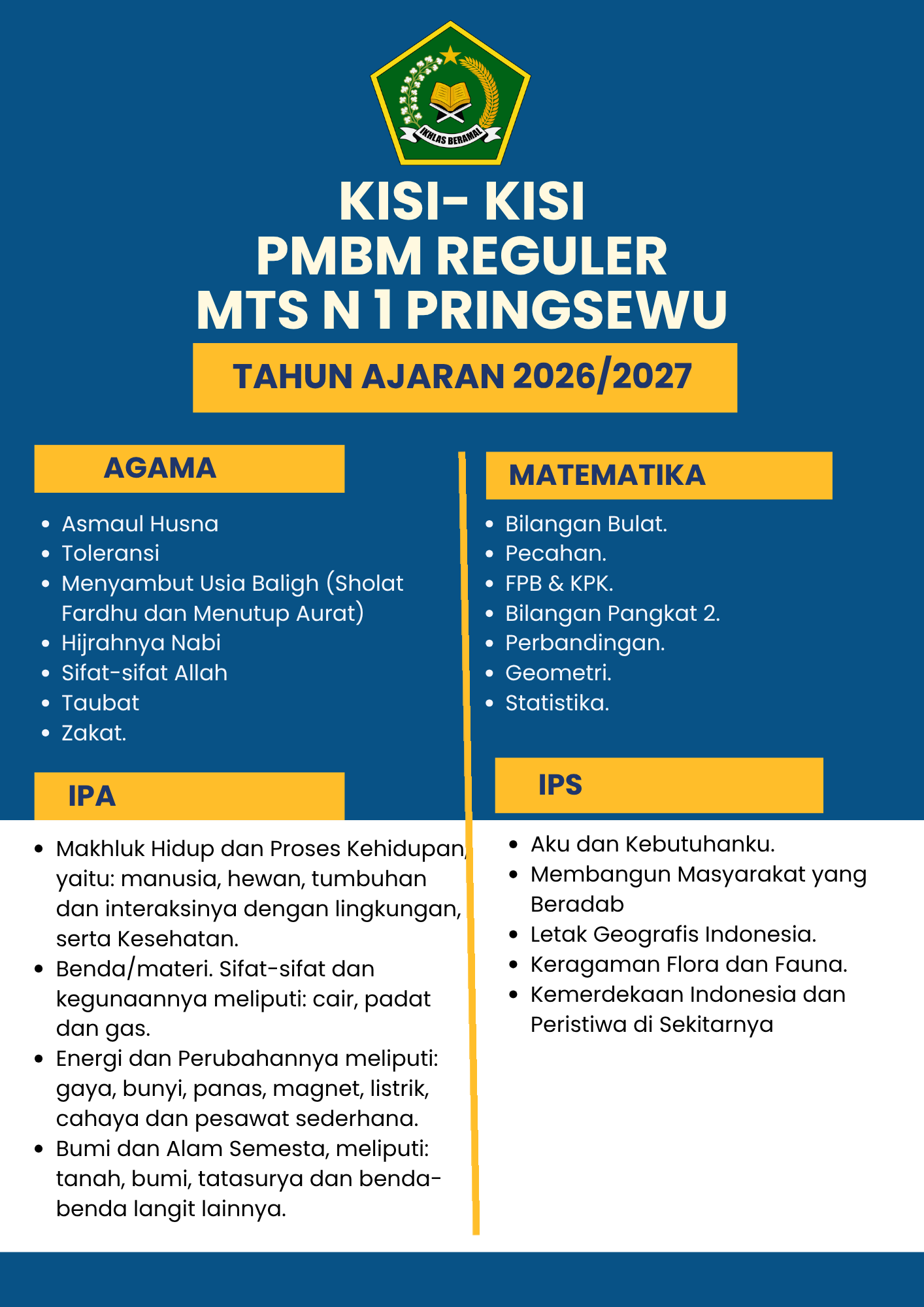 KISI KISI SOAL TES PMBM KELAS REGULER  TAHUN 2026/2027