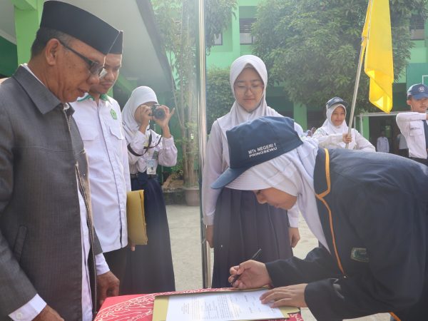 MTsN 1 Pringsewu (Humas)_ MTs Negeri 1 Pringsewu kembali menunjukkan komitmennya dalam upaya pencegahan penyalahgunaan narkoba di kalangan pelajar. Pada Senin, 6 Oktober 2025, berlangsung pelantikan Satuan Tugas (Satgas) Anti..